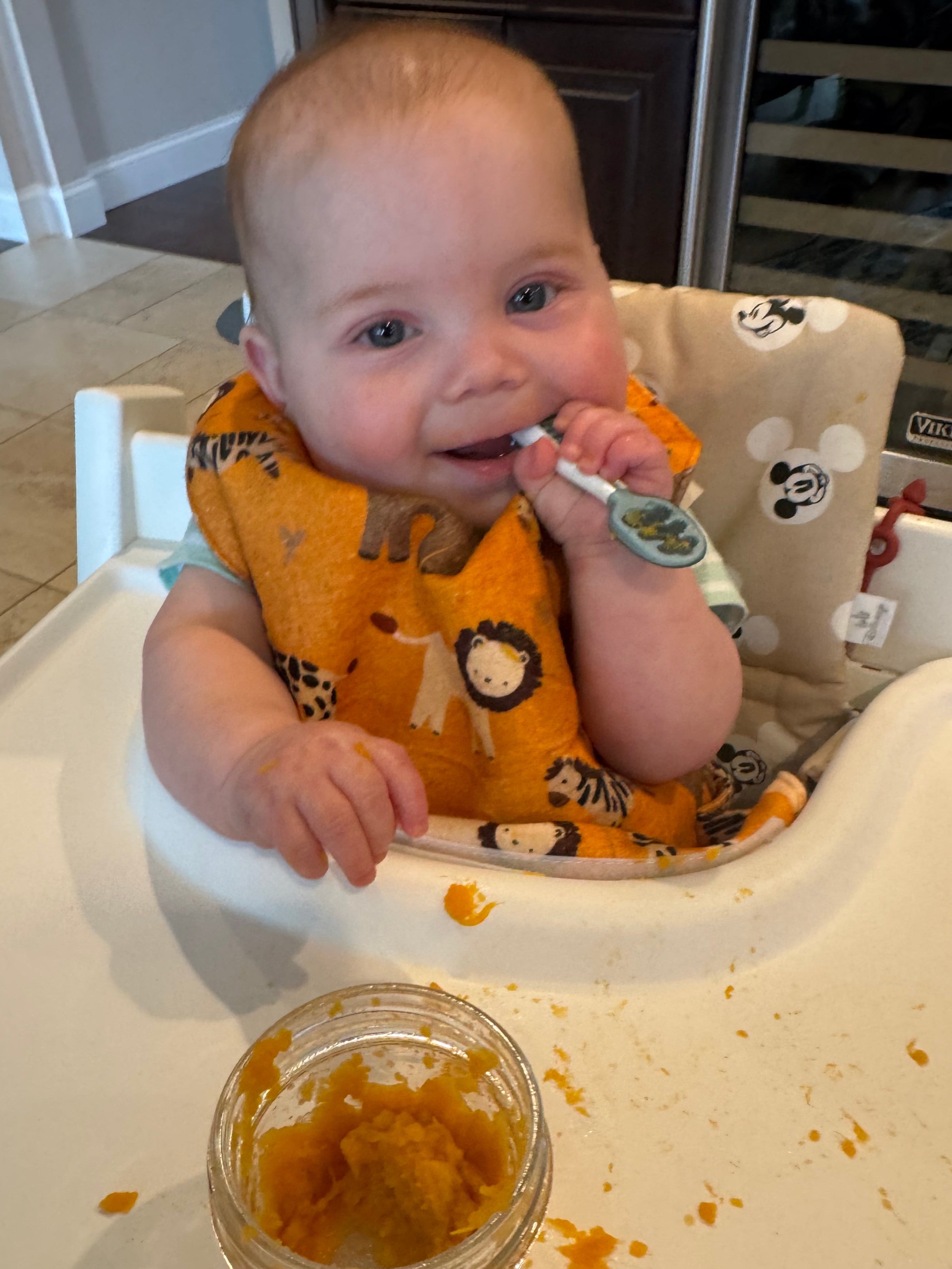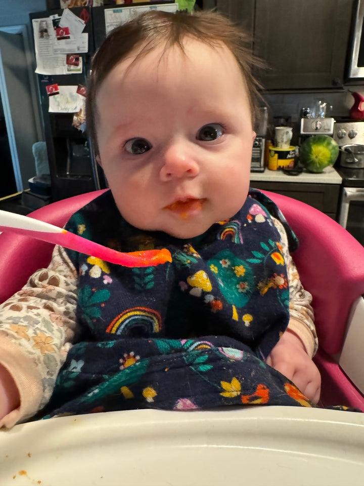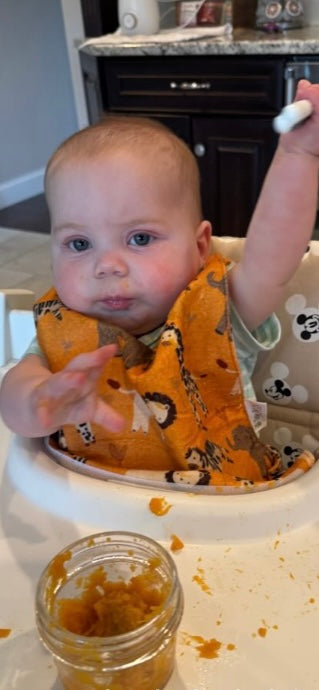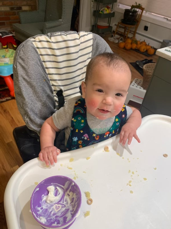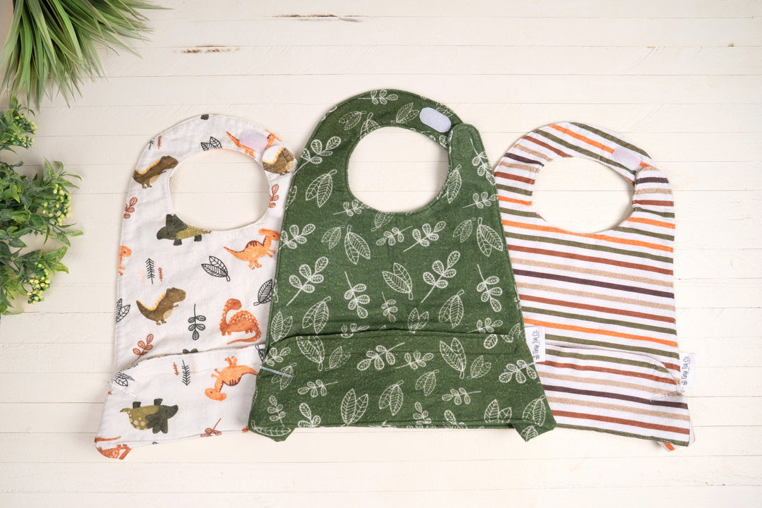 Are you ready to feed your little one without the mess? Are you looking for a bib option not made of plastic or silicone? Our patent-pending design is a 100% cotton flannel and is machine washable and dryable. Our Catch the Mess Bib attaches to the underside of your high chair table, creating a pocket that protects your little one’s clothes from any food spills.