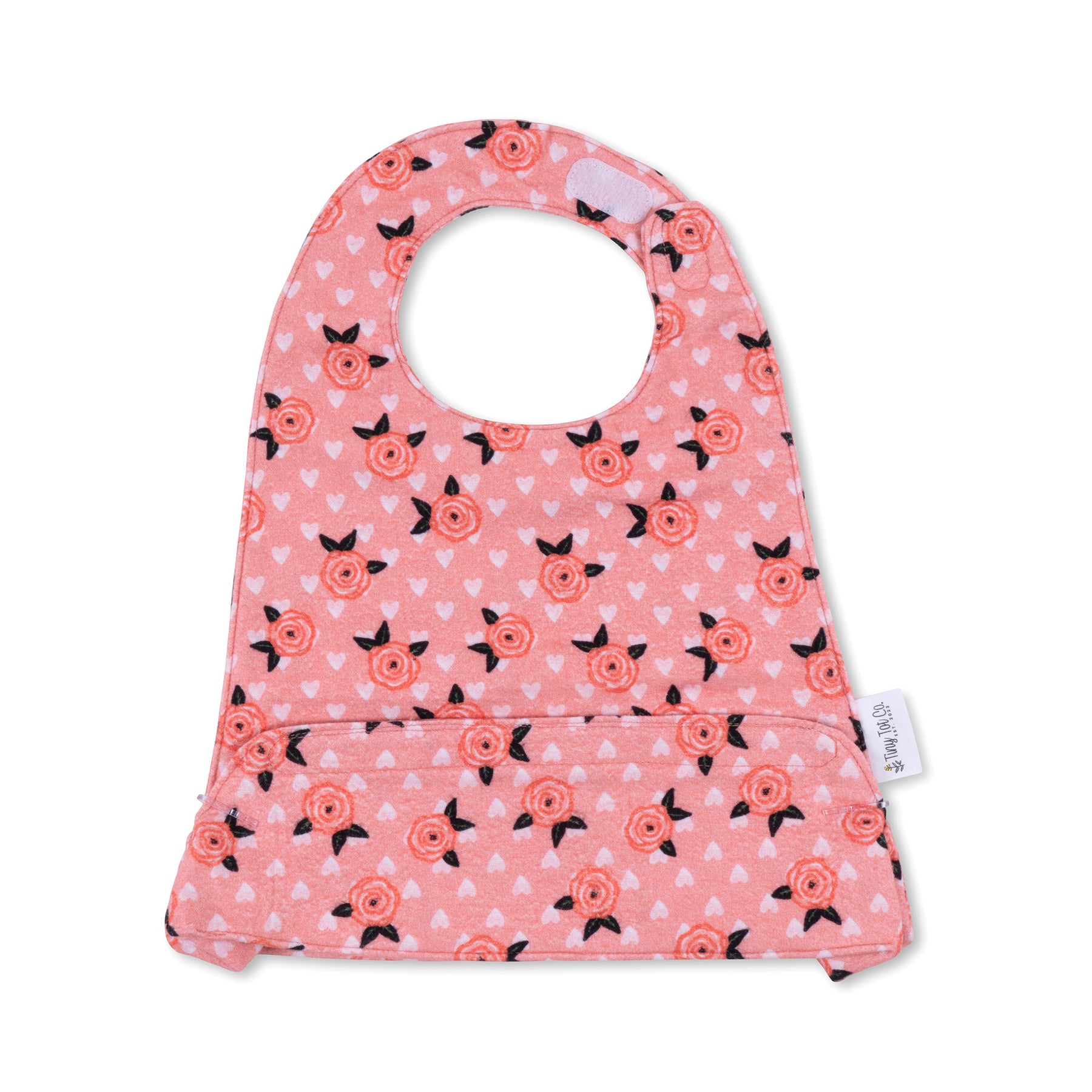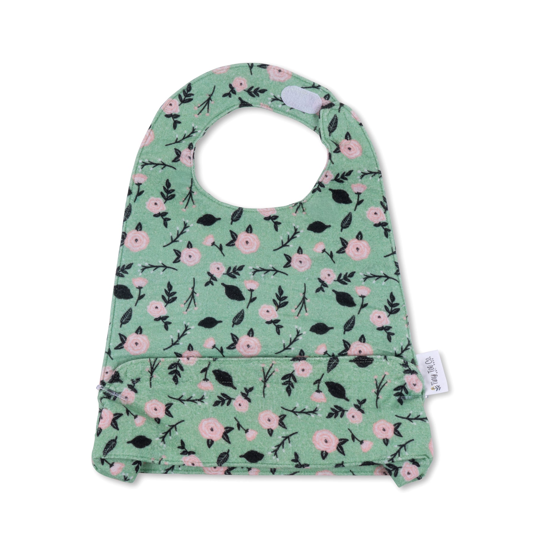 • When your little one is done eating, empty the pocket into trash  to reuse the bib later or place in the wash if needed.